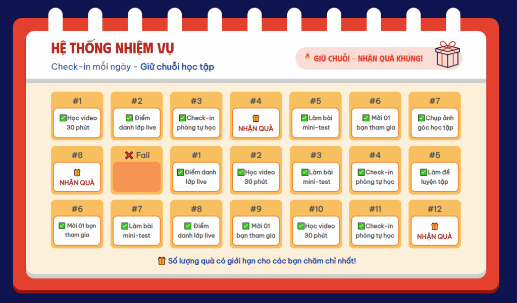 3. Hệ Thống Nhiệm Vụ Giữ Chuỗi – Nhắc Nhở Học Tập
