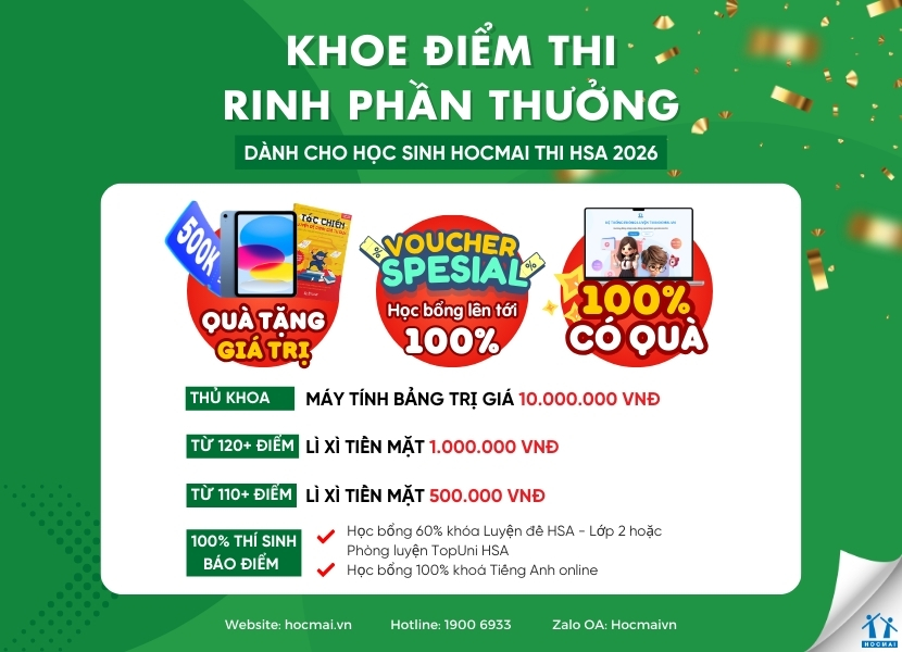 KHOE ĐIỂM HSA 2026 – VINH DANH NỖ LỰC, NHẬN QUÀ XỨNG ĐÁNG CÙNG HOCMAI
