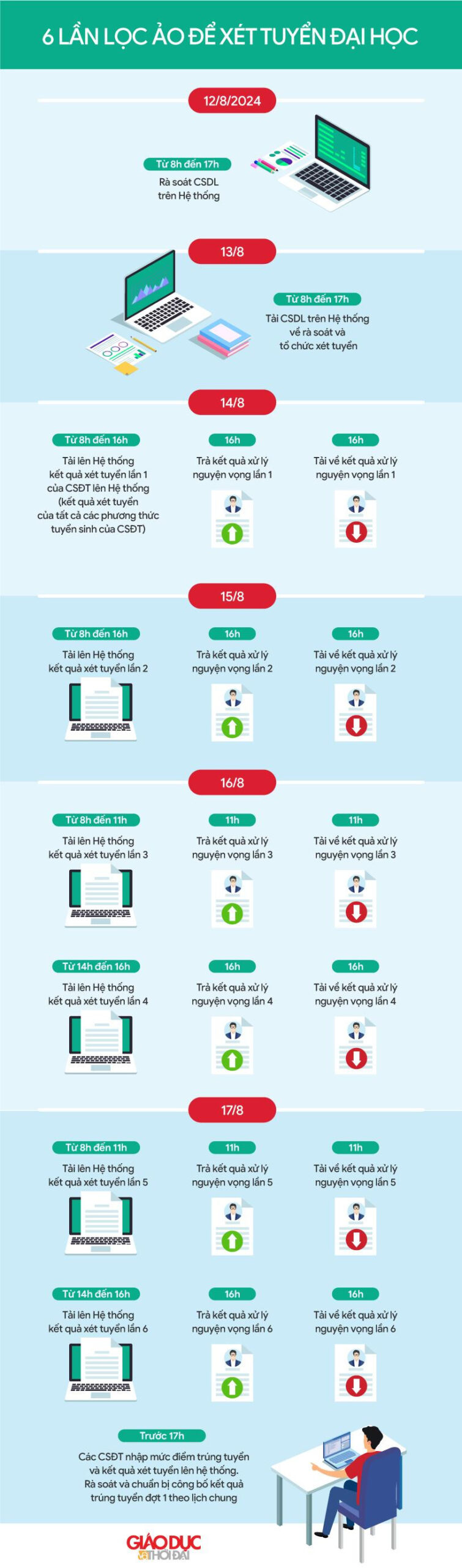 Lần lọc ảo thứ 6 sẽ hoàn thành vào 16 giờ ngày 17-8. Sau đó, các cơ sở đào tạo sẽ tải kết quả về và chuẩn bị cho việc công bố điểm chuẩn trúng tuyển.