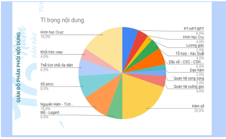 Nội dung kiến thức phần tư duy định lượng trải dài rộng từ lớp 10-12, từ mức độ nhận biết tới mức độ vận dụng cao. Chính vì kiến thức dài và rộng nên trong quá trình học tập và ôn luyện kiến thức, các bạn học sinh nên xây dựng hệ thống kiến thức để học tập hiệu quả. Các bạn tham khảo giản đồ phân phối nội dung sau đây để có kế hoạch ôn thi hiệu quả cho phần thi tư duy định lượng.