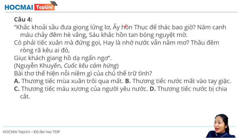 Theo cô Quỳnh An, học sinh thường hiểu nội dung bề mặt mà bỏ qua tầng nghĩa biểu trưng, dẫn tới chọn đáp án sai dù đã đọc kỹ văn bản.