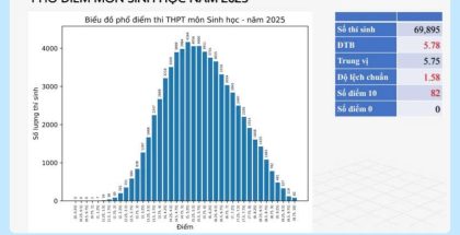 Phổ điểm môn Sinh học kỳ thi TN THPT 2025 – Kèm nhận định