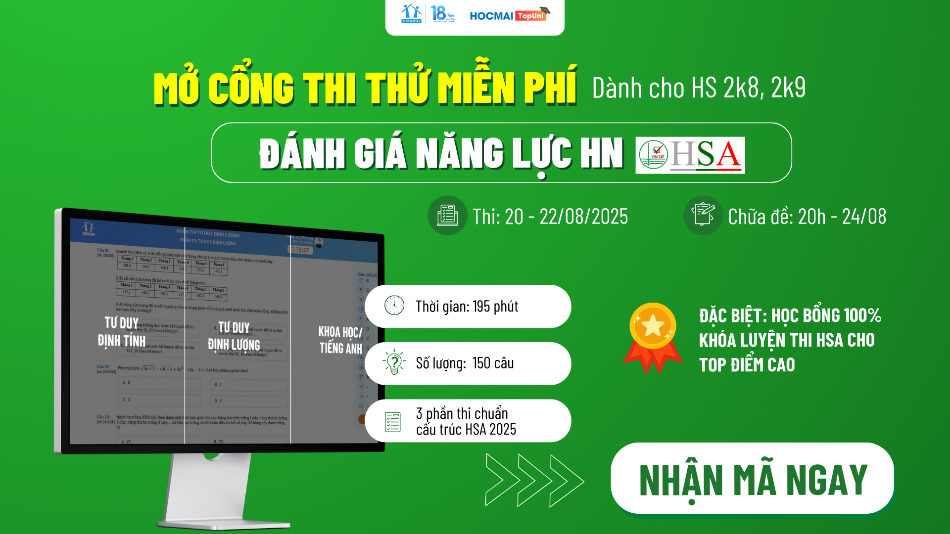 HOCMAI mở cổng miễn phí thi thử Đánh giá năng lực HSA dành cho 2K8, 2K9