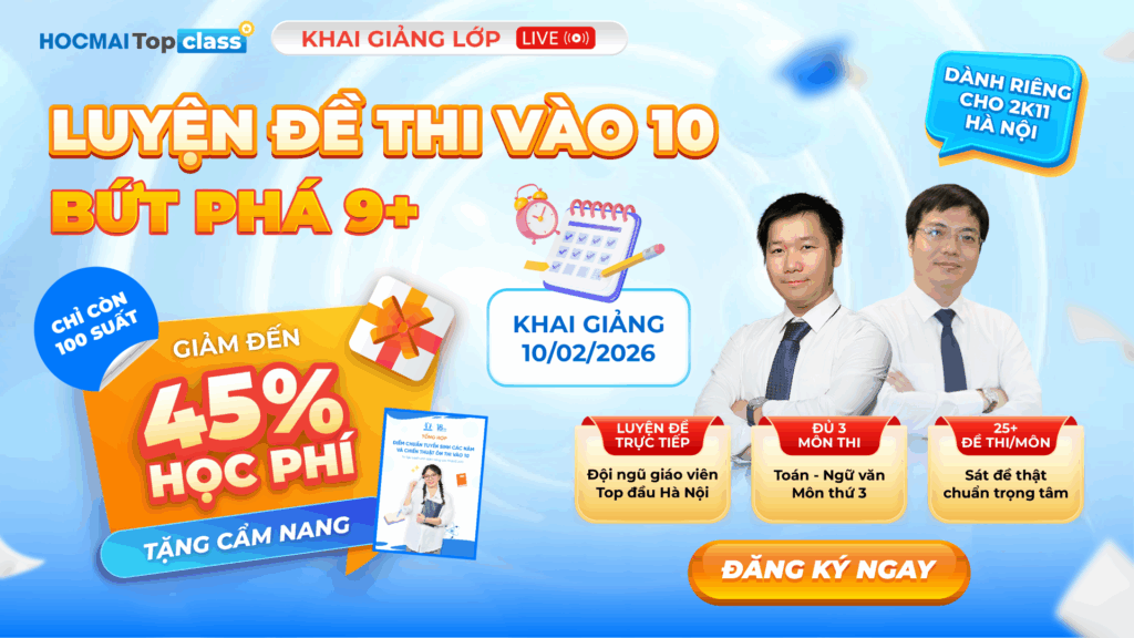 Xuất phát từ thực tế đó, HOCMAI chính thức khai giảng HM10 Luyện đề – lớp livestream luyện đề thi vào 10, được thiết kế riêng cho học sinh 2K11 tại Hà Nội, tập trung vào đúng giai đoạn quyết định này.