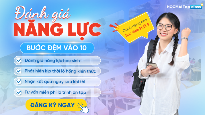 ⏰ Từ ngày 17/09 đến ngày 30/09, Hocmai tổ chức sự kiện Đánh giá năng lực đầu vào cho các bạn học sinh khối 9. Bài đánh giá năng lực đầu năm này còn cung cấp cho phụ huynh góc nhìn mới nhất về kết quả và thái độ học tập của con mình.