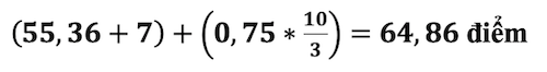 Trường hợp 1: Thí sinh A đạt điểm thi TSA là 55,36, có chứng chỉ ngoại ngữ IELTS 8.0 (được thưởng 7 điểm) và thuộc khu vực 1 (+0,75 điểm theo thang 30). Khi đó, điểm xét tuyển được tính như sau: