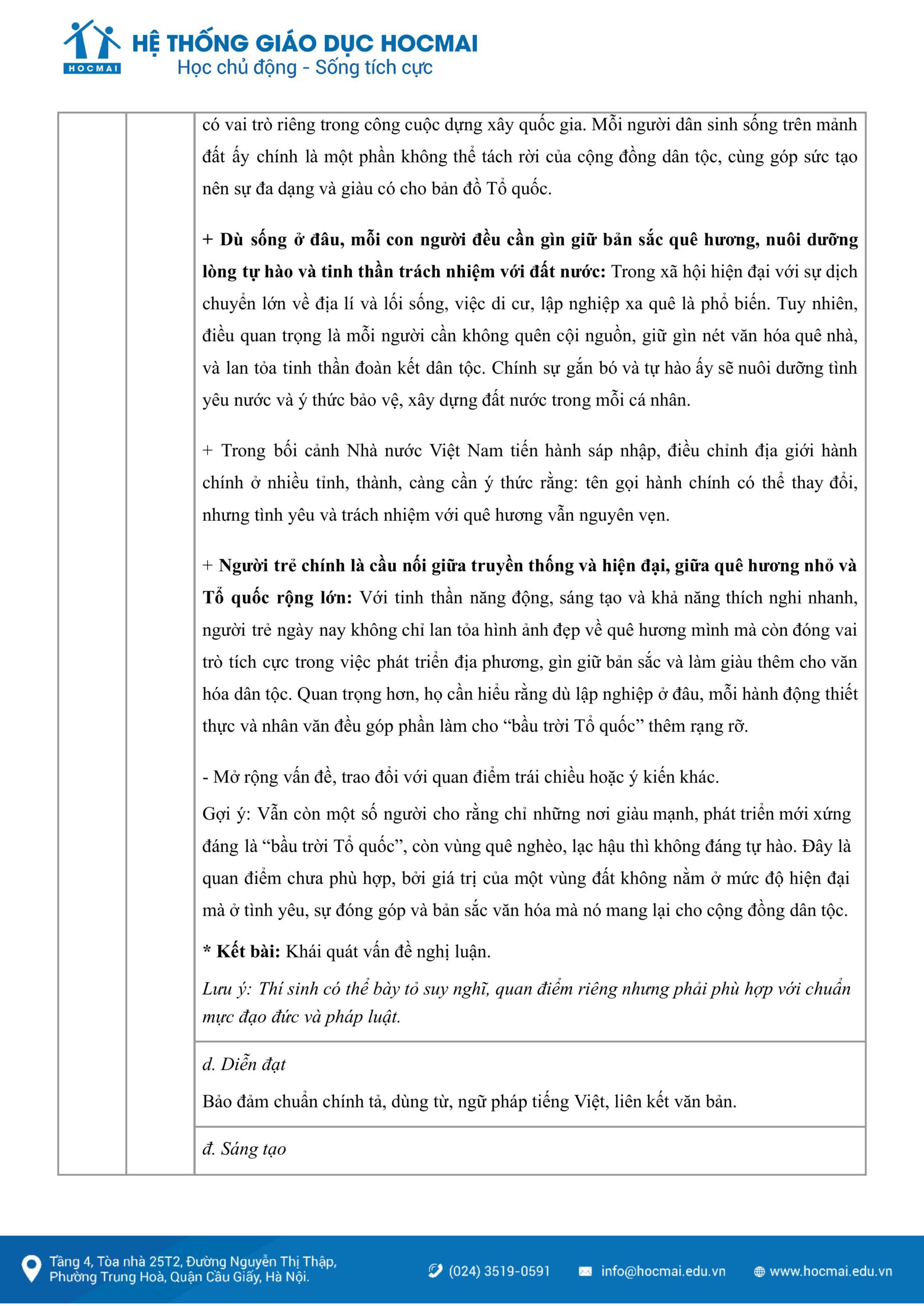 Có thể thấy đây là vấn đề mang tâm thế truyền thống, thiêng liêng nhưng lại rất cập nhật với bối cảnh xây dựng và phát triển của đất nước, đặc biệt trong “kỷ nguyên vươn mình”. Vấn đề vì thế vừa gần gũi, thiết thực, vừa chạm tới tình yêu quê hương đất nước rất thiêng liêng trong tâm hồn mỗi người dân Việt, đặc biệt có thể tạo hứng thú cho những học trò đang chuẩn bị bước vào ngưỡng cửa mới mẻ của cuộc sống, nơi các em không chỉ trau dồi, phát huy năng lực và bản lĩnh cá nhân, mà còn phải luôn tự nhắc mình giữ trái tim ấm nóng với quê hương đất nước. Tư tưởng của bài luận cũng sẽ rất phù hợp với xu hướng đổi mới, hòa nhập của thời đại.