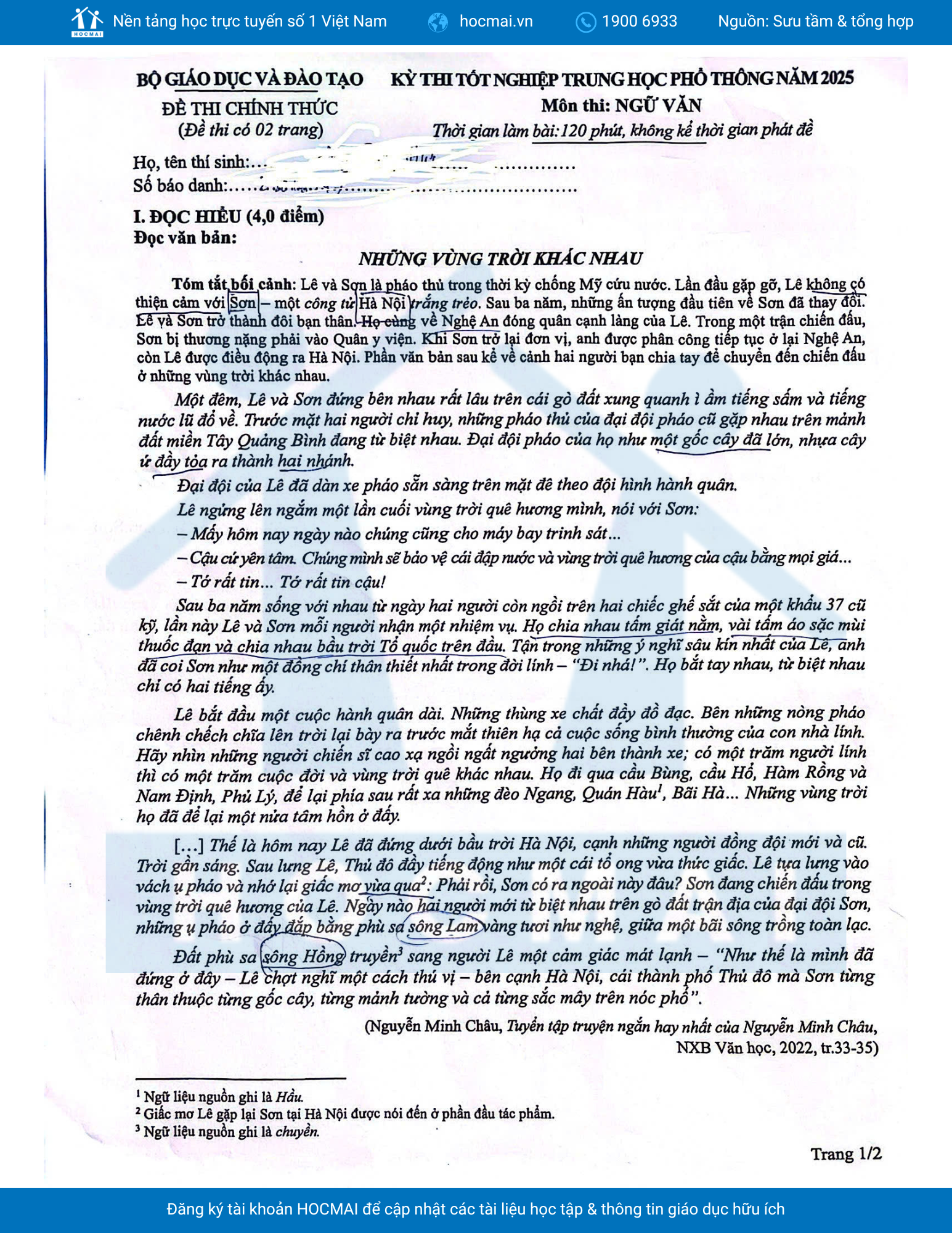1. Đề thi môn Ngữ văn kỳ thi tốt nghiệp THPT năm 2025