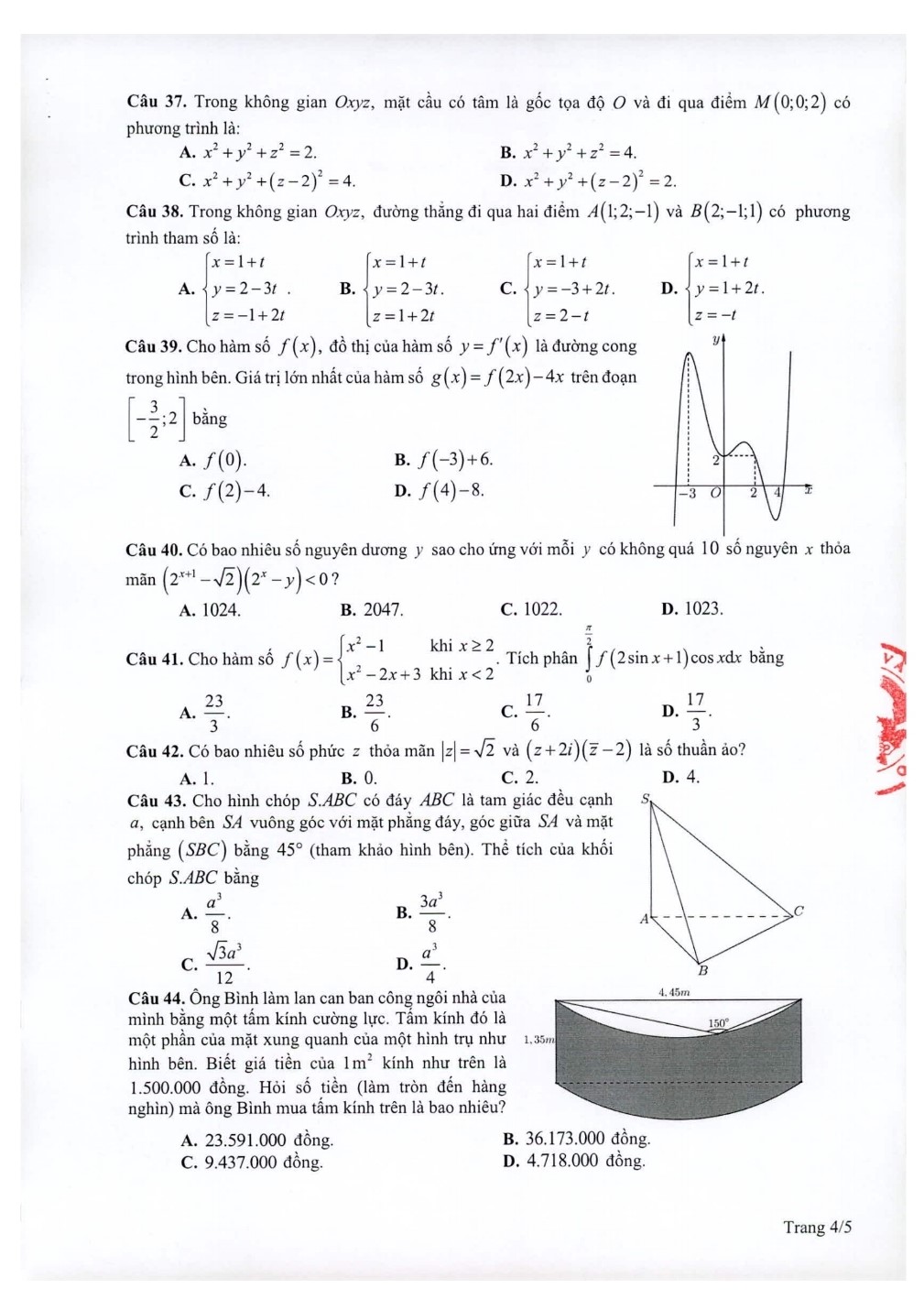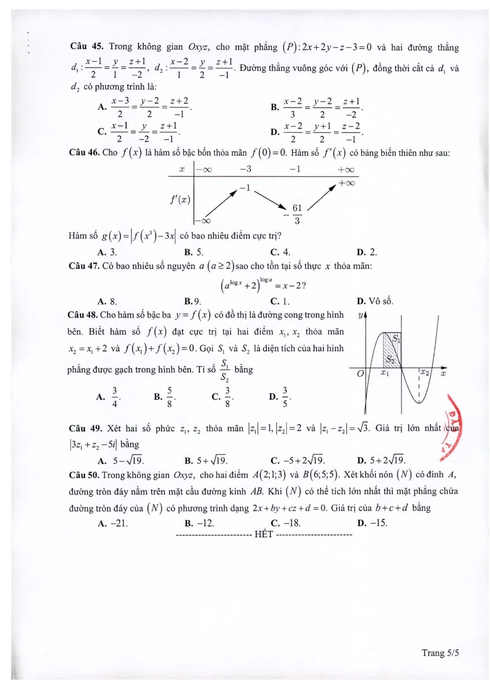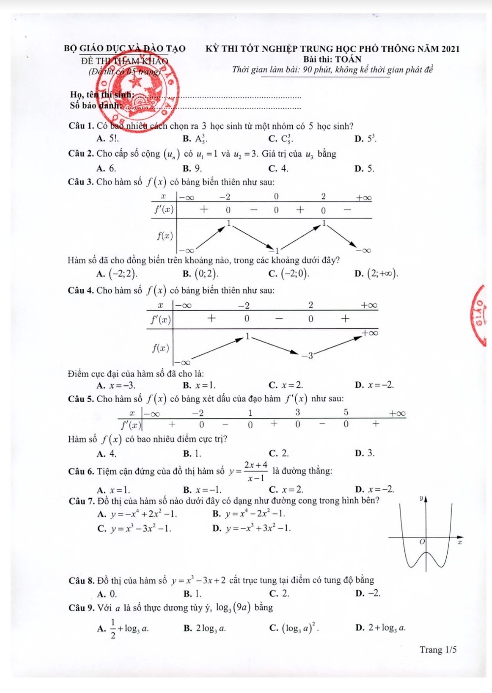 Dưới đây là đáp án gợi ý đề tham khảo môn Toán do giáo viên tổ Toán – Hệ thống Giáo dục HOCMAI thực hiện, sau khi Bộ Giáo dục và Đào tạo công bố đáp án:
