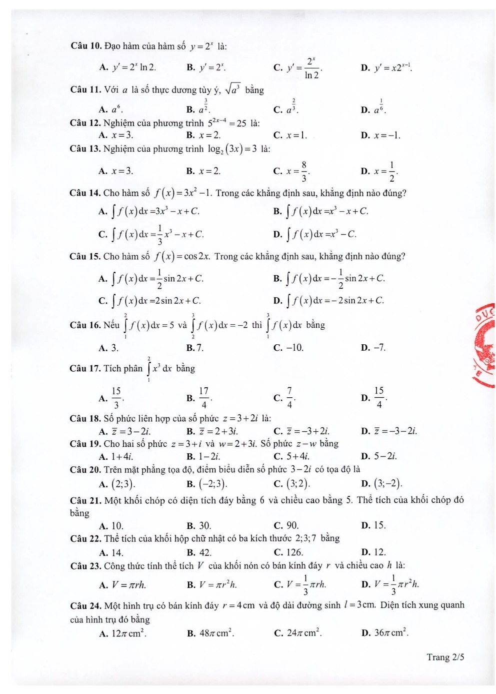 | Câu | Đáp án | Câu | Đáp án | Câu | Đáp án | Câu | Đáp án | Câu | Đáp án | ||||