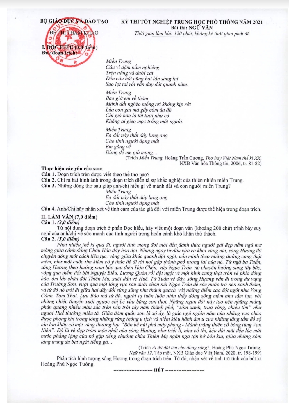Xem thêm: Đề và đáp án tham khảo thi tốt nghiệp THPT 2021 tất cả các môn