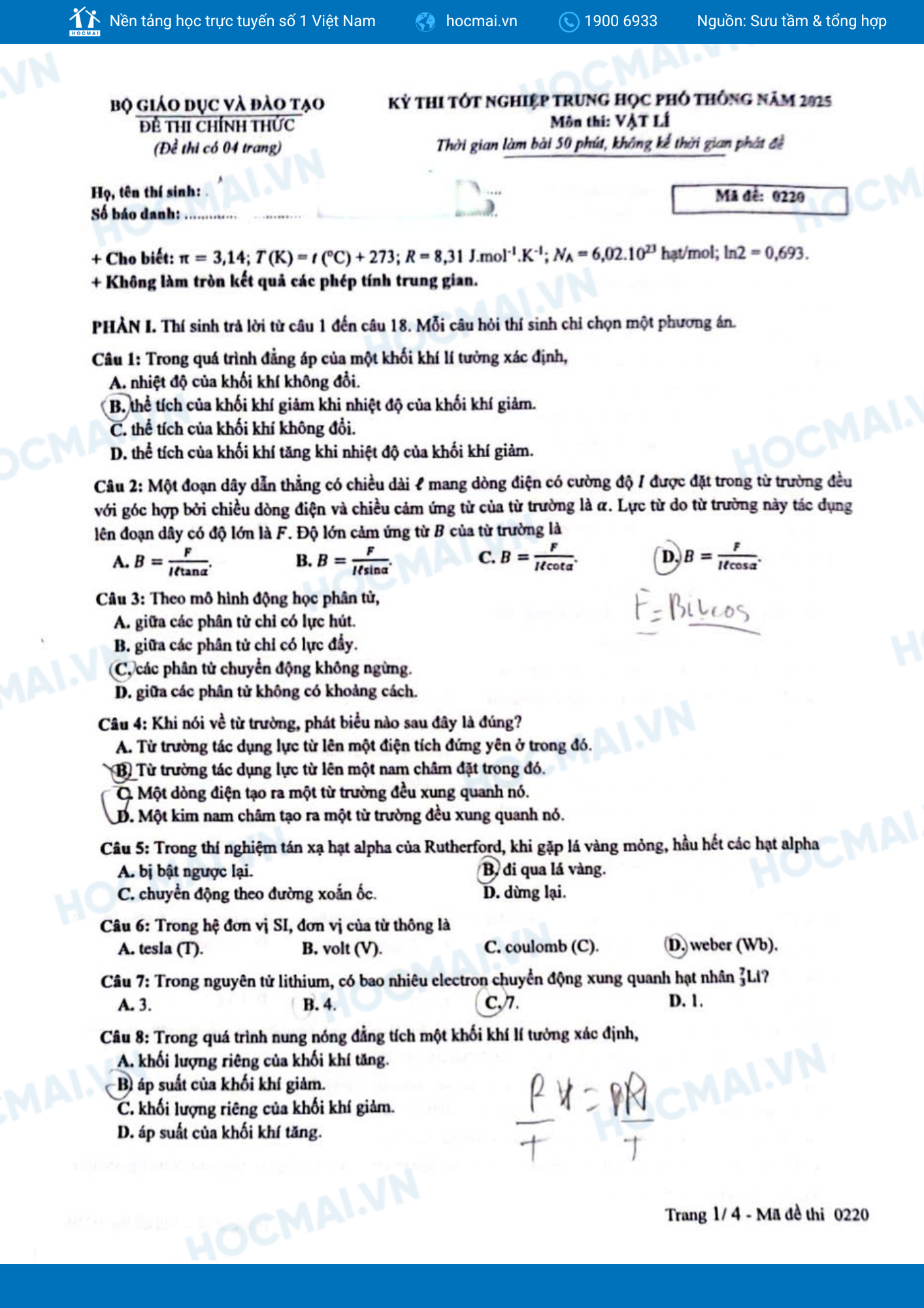 Hãy cùng HOCMAI điểm nhanh Đáp án môn Vật lý kỳ thi tốt nghiệp THPT 2025, kèm các nhận định từ phía Giáo viên để đối chiếu kết quả, đánh giá mức độ đề thi và tiếp thêm động lực chinh phục chặng cuối của kỳ thi!