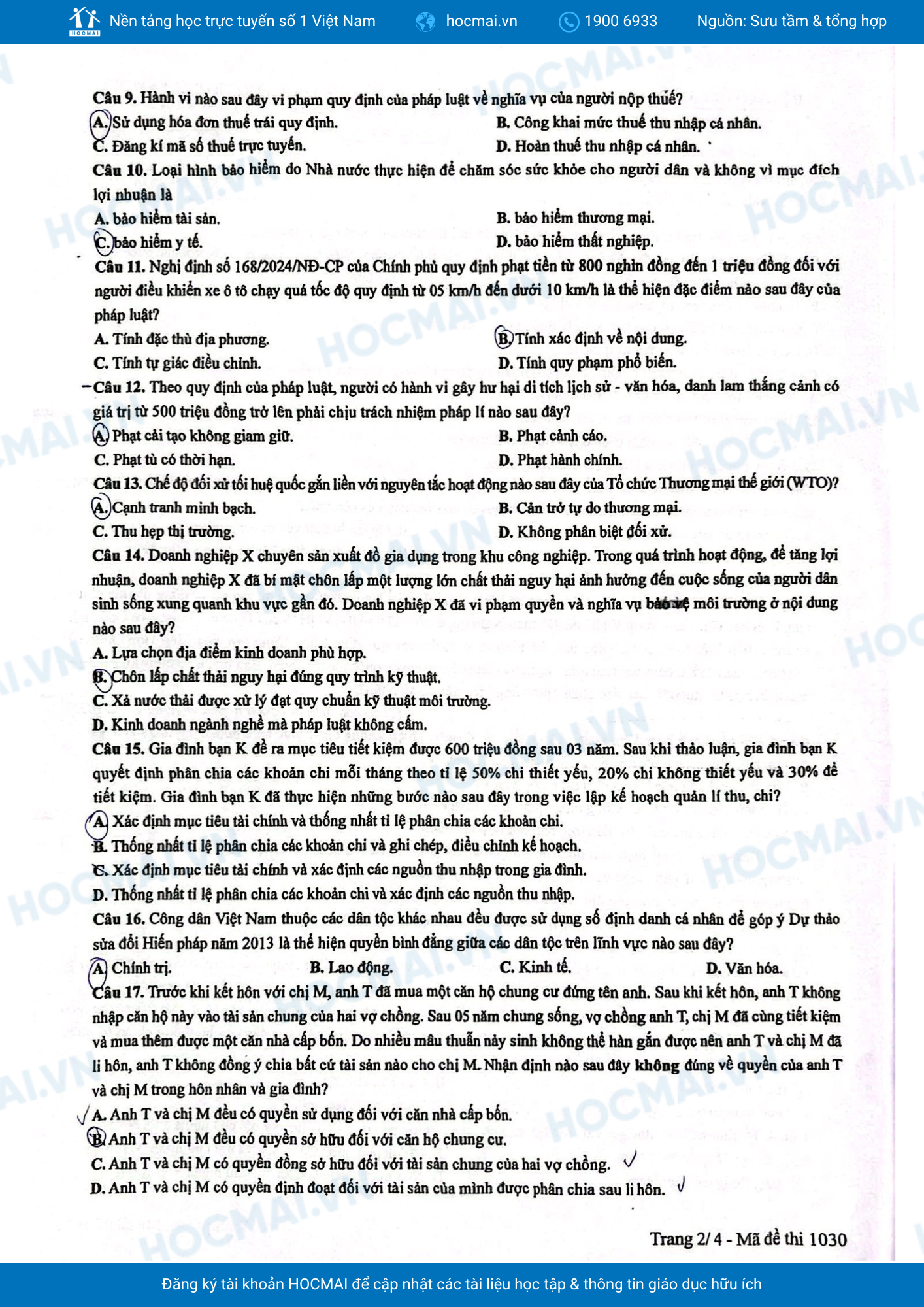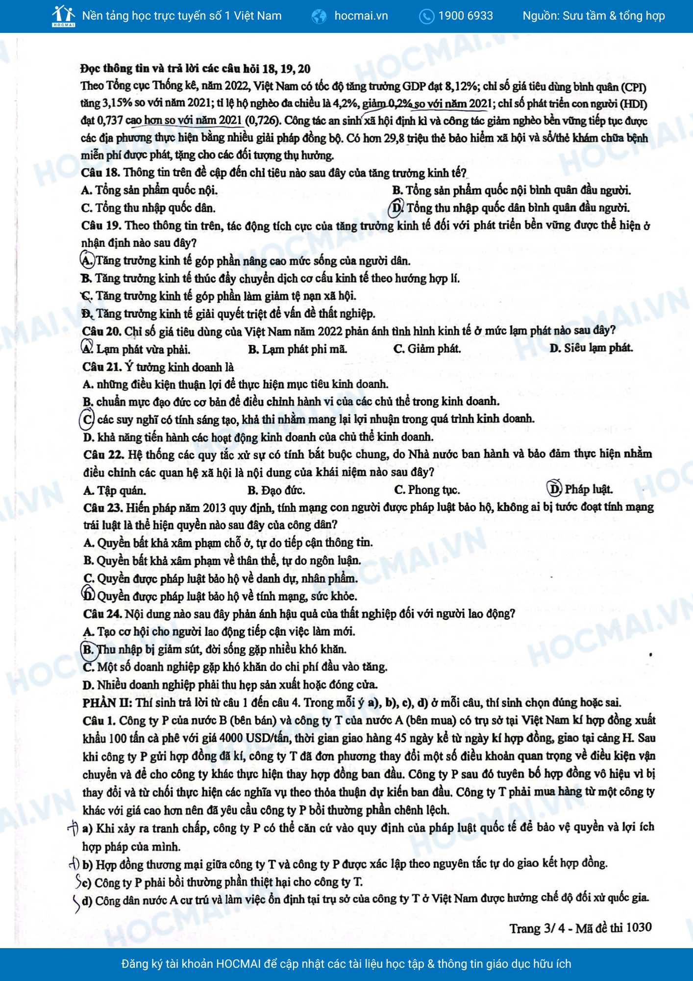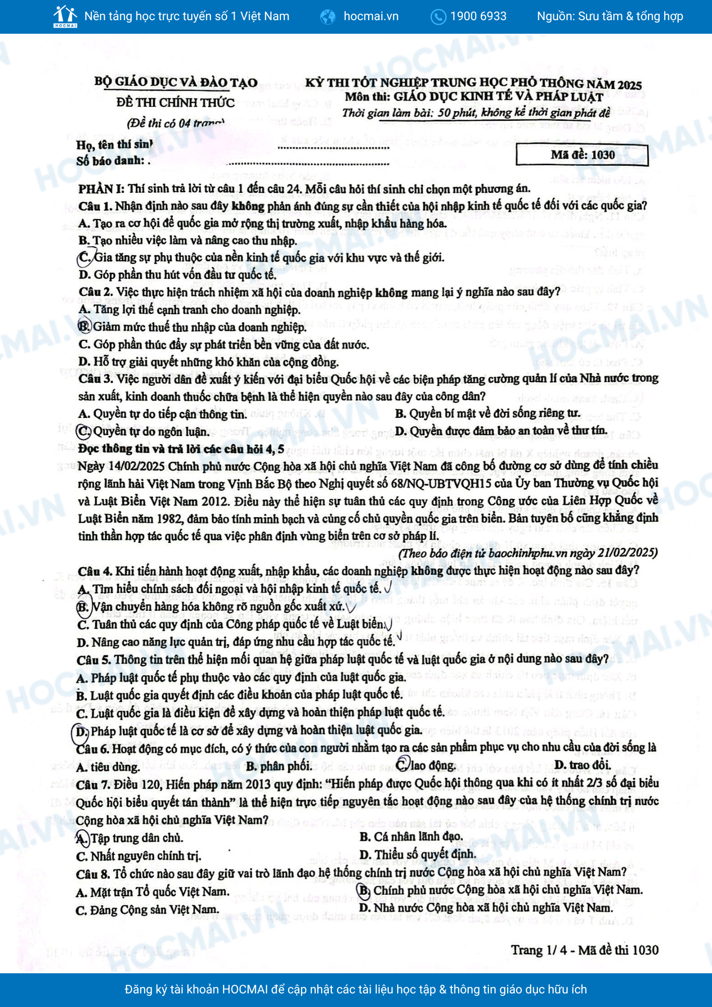 Dưới đây là Đề thi và đáp án môn Giáo dục Kinh tế và Pháp luật kỳ thi tốt nghiệp THPT 2025 (kèm nhận định) do đội ngũ giáo viên HOCMAI tổng hợp và phân tích, hỗ trợ thí sinh kiểm tra, đánh giá kết quả ngay sau giờ thi!