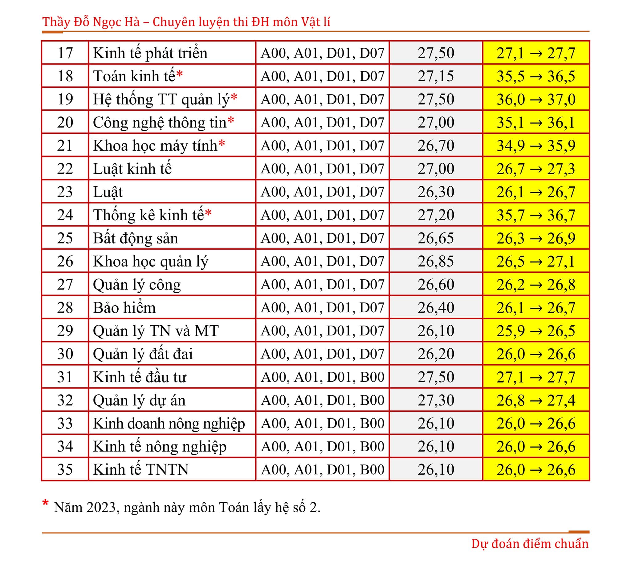 | 3 | Công nghệ thông tin | 26,5 – 27+ |