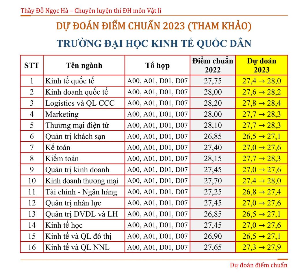 Cùng theo dõi dự đoán điểm chuẩn trường Đại học Kinh tế Quốc dân năm 2023 do thầy Đỗ Ngọc Hà – Giáo viên môn Vật lí tại Hệ thống Giáo dục HOCMAI thực hiện: