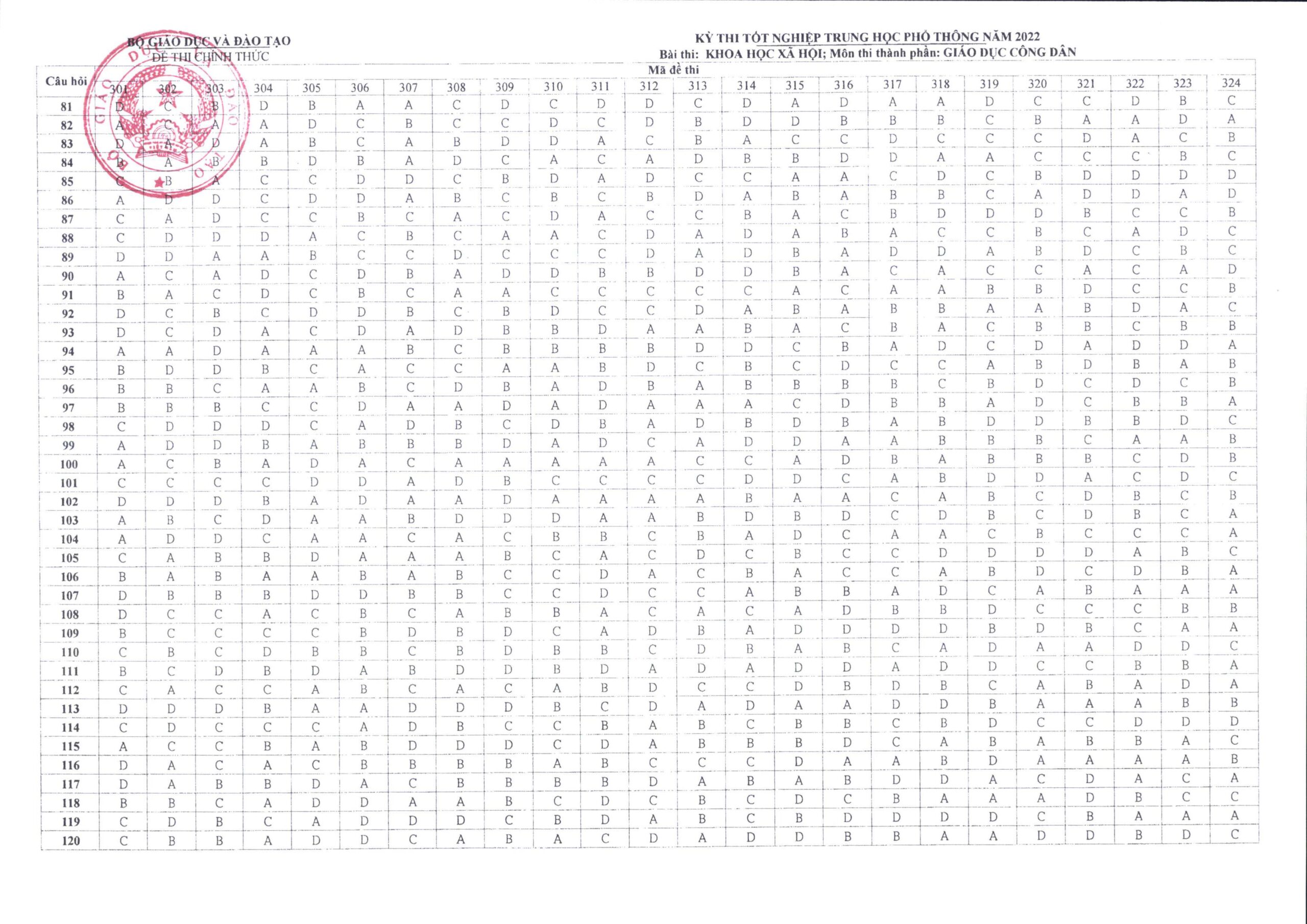 Full đáp án 24 mã đề môn GDCD thi tốt nghiệp THPT 2022 (chính thức)