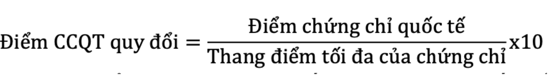– Điểm CCQT quy đổi là điểm của chứng chỉ quốc tế tương ứng được quy đổi theo thang điểm 10, cụ thể như sau: