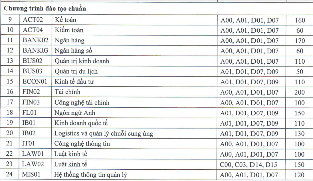 – Với các chương trình Chất lượng cao: Điểm xét tuyển được tính trên thang điểm 40, trong đó nhân đôi điểm đối với môn Toán, cụ thể: