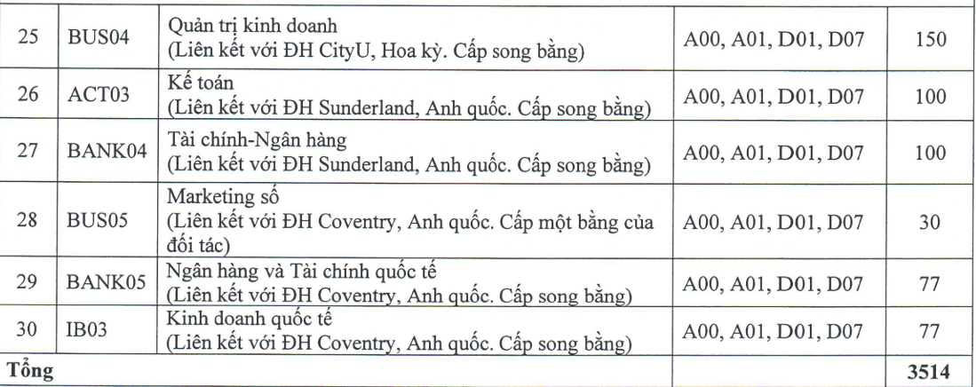 + Với các chương trình đào tạo chuẩn và chương trình đào tạo liên kết quốc tế: Điểm xét tuyển được tính trên thang điểm 30, cụ thể: