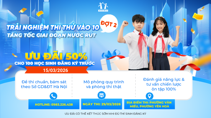HOCMAI CHÍNH THỨC MỞ ĐĂNG KÝ THI THỬ VÀO 10 ĐỢT 2
