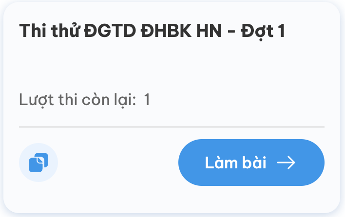 - – Tắt hết các ứng dụng khác (nếu làm bài trên điện thoại, máy tính bảng); hoặc tắt hết các cửa sổ và tab khác trên trình duyệt (nếu làm bài trên PC, Laptop) trong khi làm bài. Trang thi sẽ hiển thị toàn màn hình, nếu phát hiện thoát trang thi, hệ thống sẽ đưa ra cảnh báo