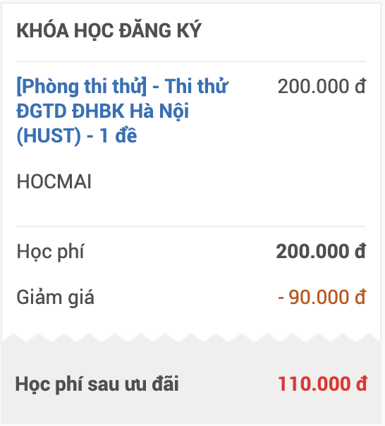 Thí sinh kiểm tra kỹ thông tin KHOÁ HỌC ĐĂNG KÝ và lựa chọn hình thức thanh toán.