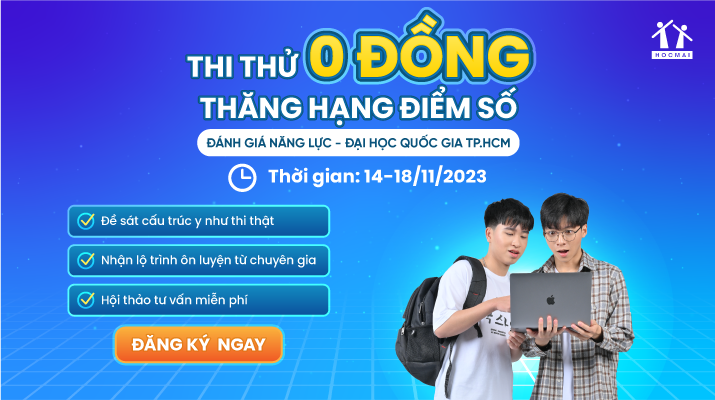 Đồng hành cùng học sinh trong hành trình chinh phục kỳ thi ĐGNL ĐHQG TP.HCM năm 2024, HOCMAI tổ chức miễn phí chương trình “Thi thử 0 đồng – Tạo đà vào trường TOP” giúp các em rà soát lại kiến thức để xác định được năng lực hiện tại của bản thân và định hướng ôn tập phù hợp.