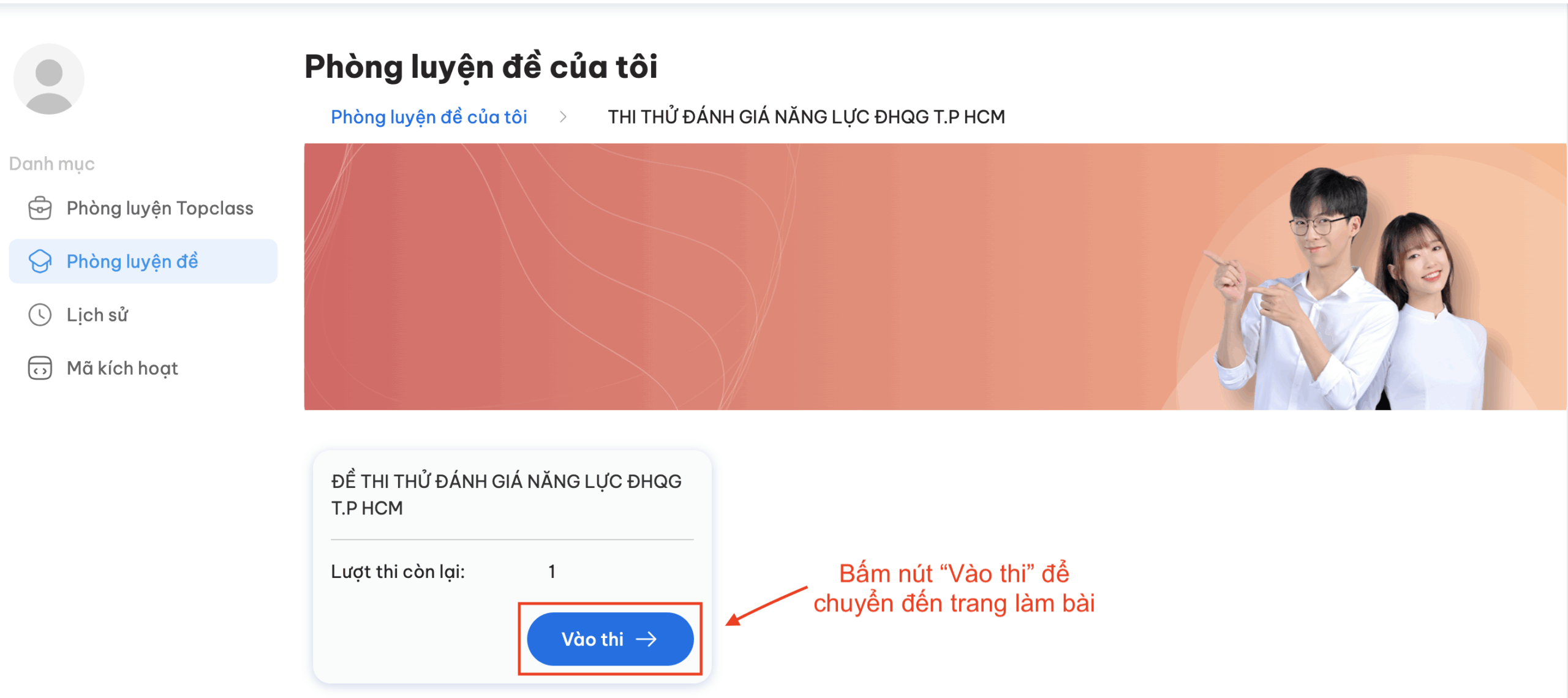Bước 1: Vào làm bài thi