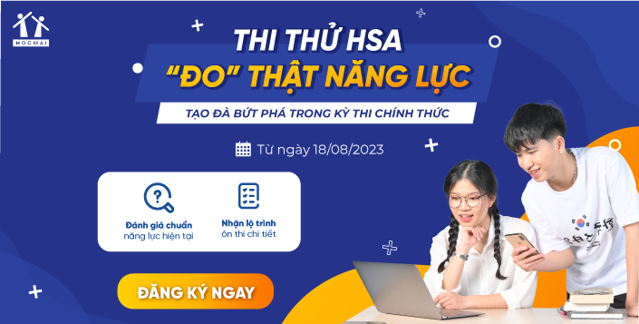 Đồng hành với 2k6 trong hành trình chinh phục kỳ thi HSA năm 2024, HOCMAI tổ chức miễn phí chương trình “Thi thử HSA 0 đồng – Đo thật năng lực” giúp các em rà soát lại kiến thức để xác định được năng lực hiện tại của bản thân và định hướng ôn tập phù hợp.