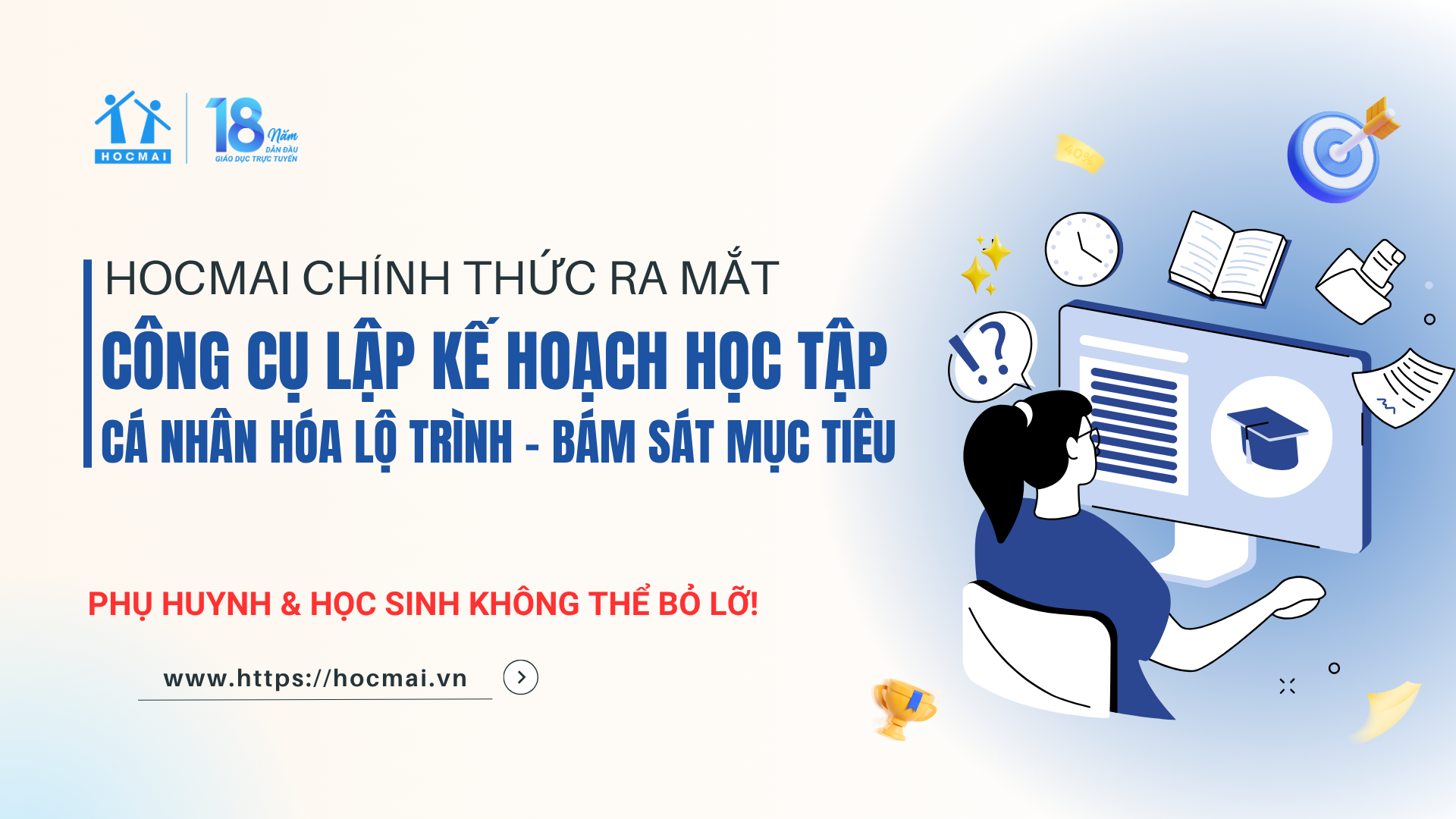 Trong hành trình chinh phục mục tiêu học tập, việc có một kế hoạch rõ ràng và phù hợp với năng lực bản thân đóng vai trò vô cùng quan trọng. Hiểu được điều đó, HOCMAI chính thức ra mắt công cụ Lập kế hoạch học tập cá nhân hóa, một giải pháp giúp học sinh chủ động xây dựng lộ trình học khoa học, bám sát mục tiêu và tiến bộ mỗi ngày.