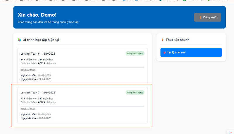 - Hệ thống sẽ đưa ra lộ trình mới sát nhất với thực tế học tập.