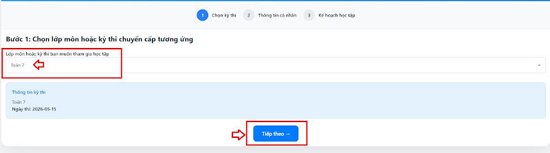 - Lựa chọn lớp, môn học hoặc kỳ thi.