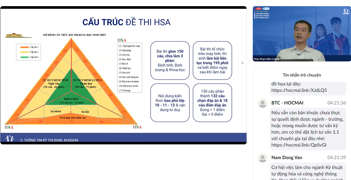 Với kinh nghiệm ôn thi ĐGNL, thầy Cường đã chia sẻ cấu trúc đề thi HSA một cách chi tiết và cụ thể:
