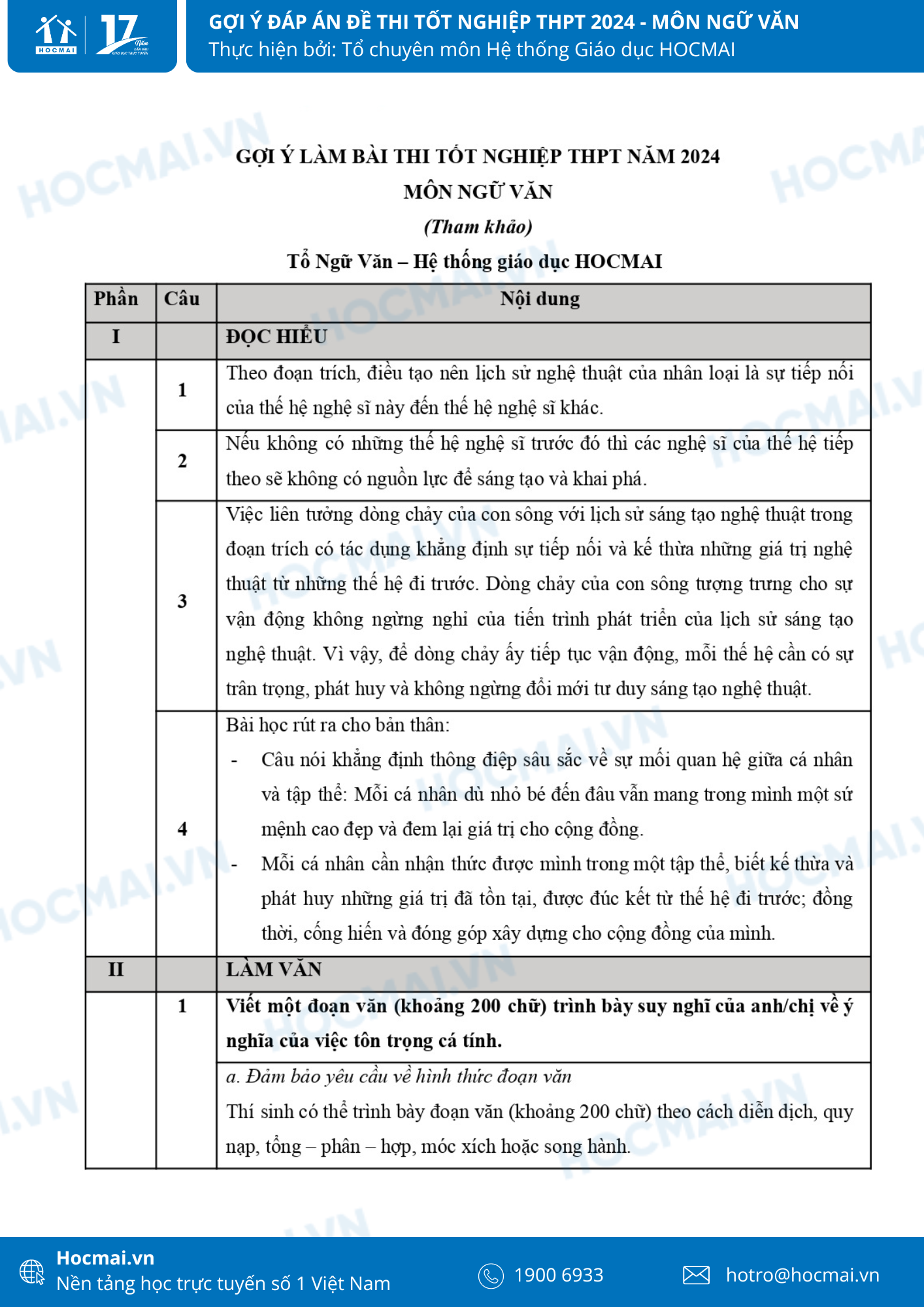Ngày 27/6 2024, sau 2 tiếng ” bay bổng” cùng với đề văn thú vị của kỳ thi Tốt nghiệp THPT năm nay, phụ huynh học sinh hay cũng theo dõi gợi ý giải đề môn Ngữ văn cùng với các thầy cô của Hệ thống giáo dục HOCMAI nhé!