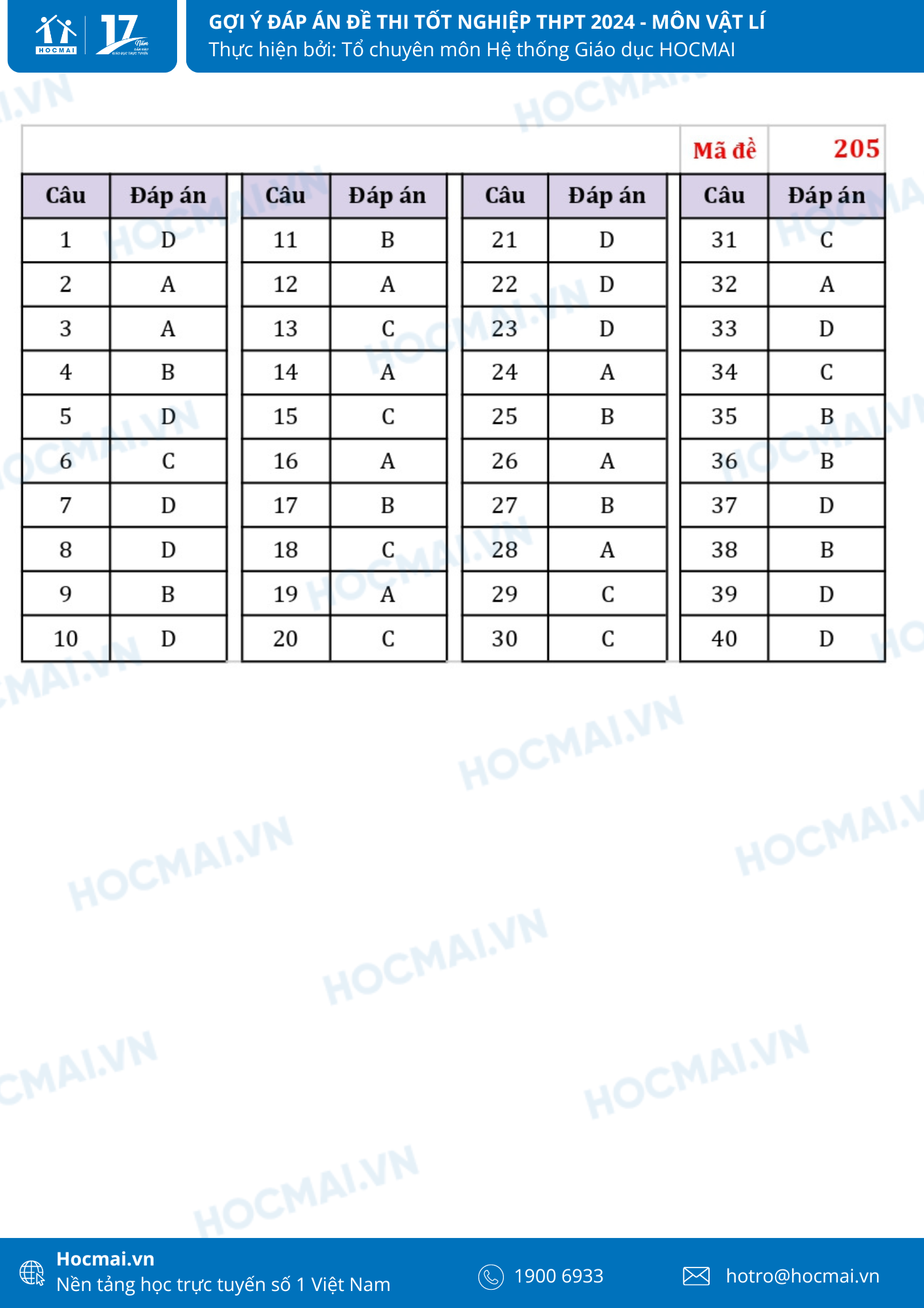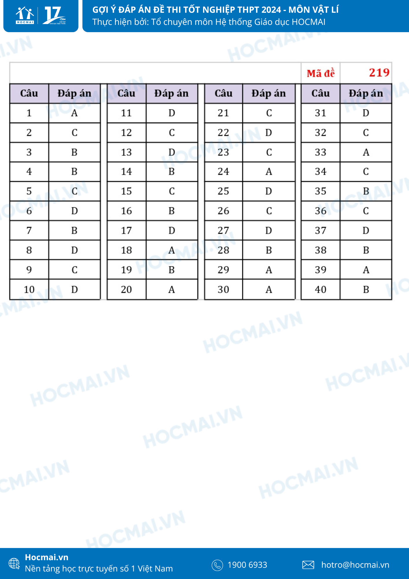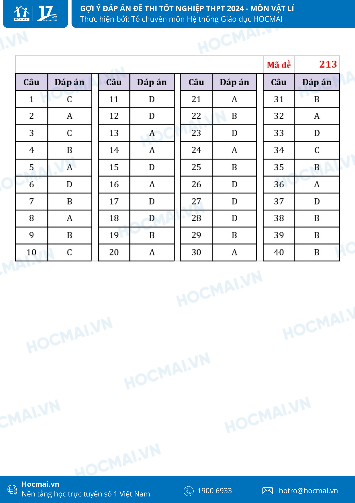 Sau 60 phút làm bài, các thí sinh lựa chọn tổ hợp môn Khoa học tự nhiên cũng đã hoàn thành xong bài thi môn Vật lí. Dưới đây là gợi ý giải đề của các thầy cô từ Hệ thống giáo dục HOCMAI, mời quý phụ huynh và học sinh cùng theo dõi, gợi ý đáp án sẽ được cập nhật nhanh chóng và đầy đủ nhất!