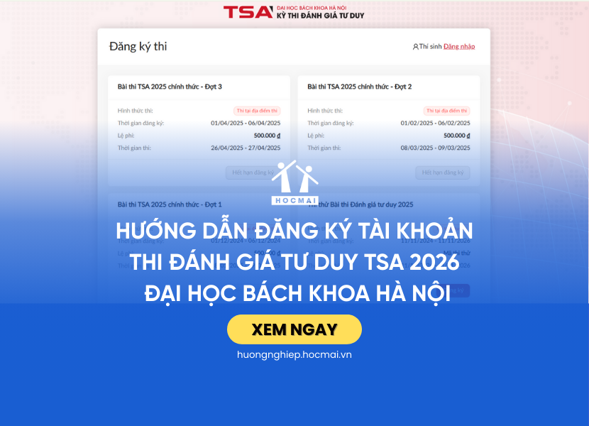 >> Xem thêm: Lịch thi Đánh giá tư duy (TSA) của Đại học Bách Khoa Hà Nội 2026