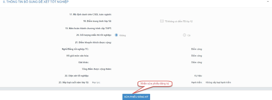 Bước 2: Sau khi sửa thông tin, thí sinh bấm Cập nhật phiếu đăng ký để lưu các thông tin vừa chỉnh sửa