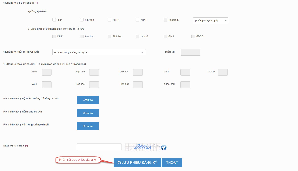 Bước 7: Thí sinh bấm Lưu phiếu đăng ký để lưu thông tin.