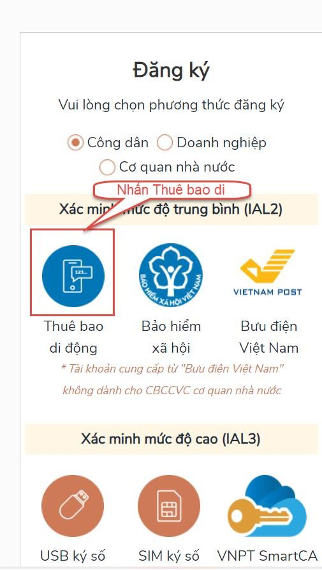 Bước 3: Nhấp vào Thuê bao di động