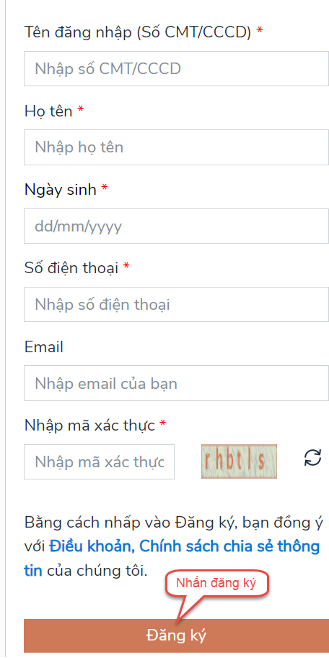 Bước 4: Điền đầy đủ thông tin và bấm Đăng ký