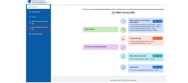1. Bước 1: Đăng nhập: Truy cập vào hệ thống Tuyển sinh của Bộ GD&ĐT tại địa chỉ thisinh.thitotnghiepthpt.edu.vn bằng tài khoản đã được cấp.
