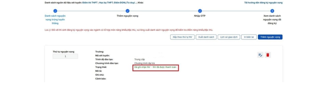 • Tính hợp lệ: Theo quy chế, chỉ những nguyện vọng đã được thanh toán lệ phí thành công mới được hệ thống ghi nhận và đưa vào danh sách xét tuyển.