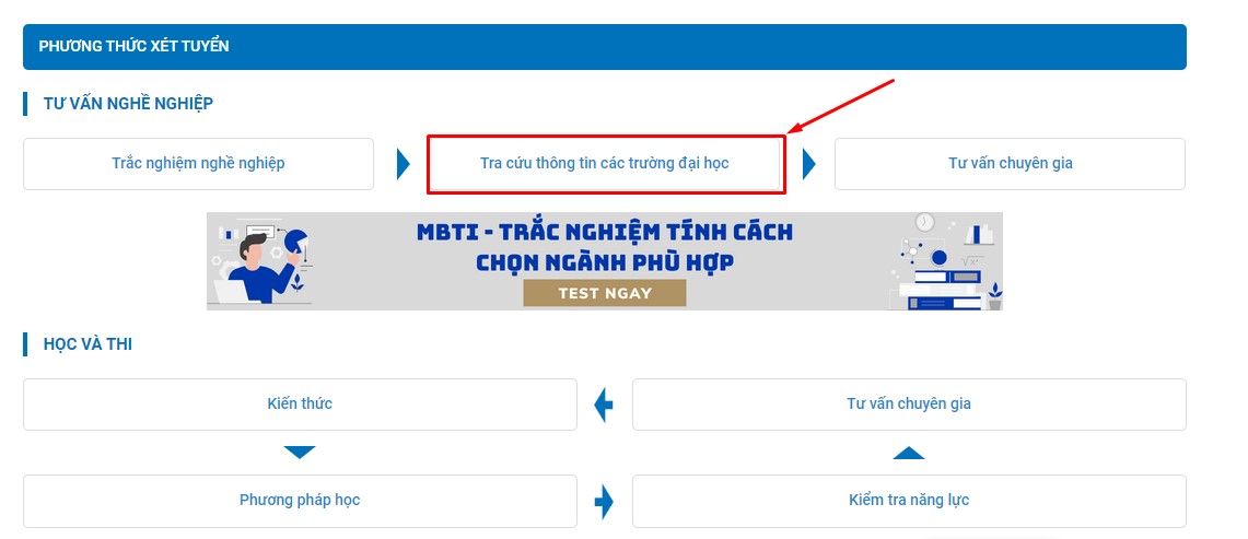 Bước 2: Chọn phần “Tra cứu thông tin các trường đại học” (Ảnh 1).