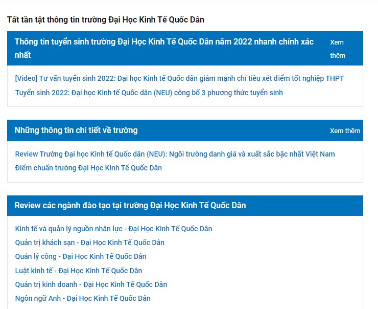 Thí sinh có thể tra cứu tất cả các thông tin xét tuyển của Đại học Kinh tế Quốc dân như: