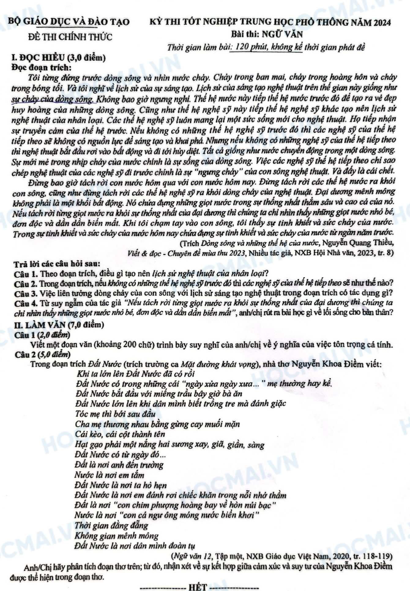 Đề thi chính thức Tốt nghiệp THPT Quốc gia môn Ngữ văn năm 2024: