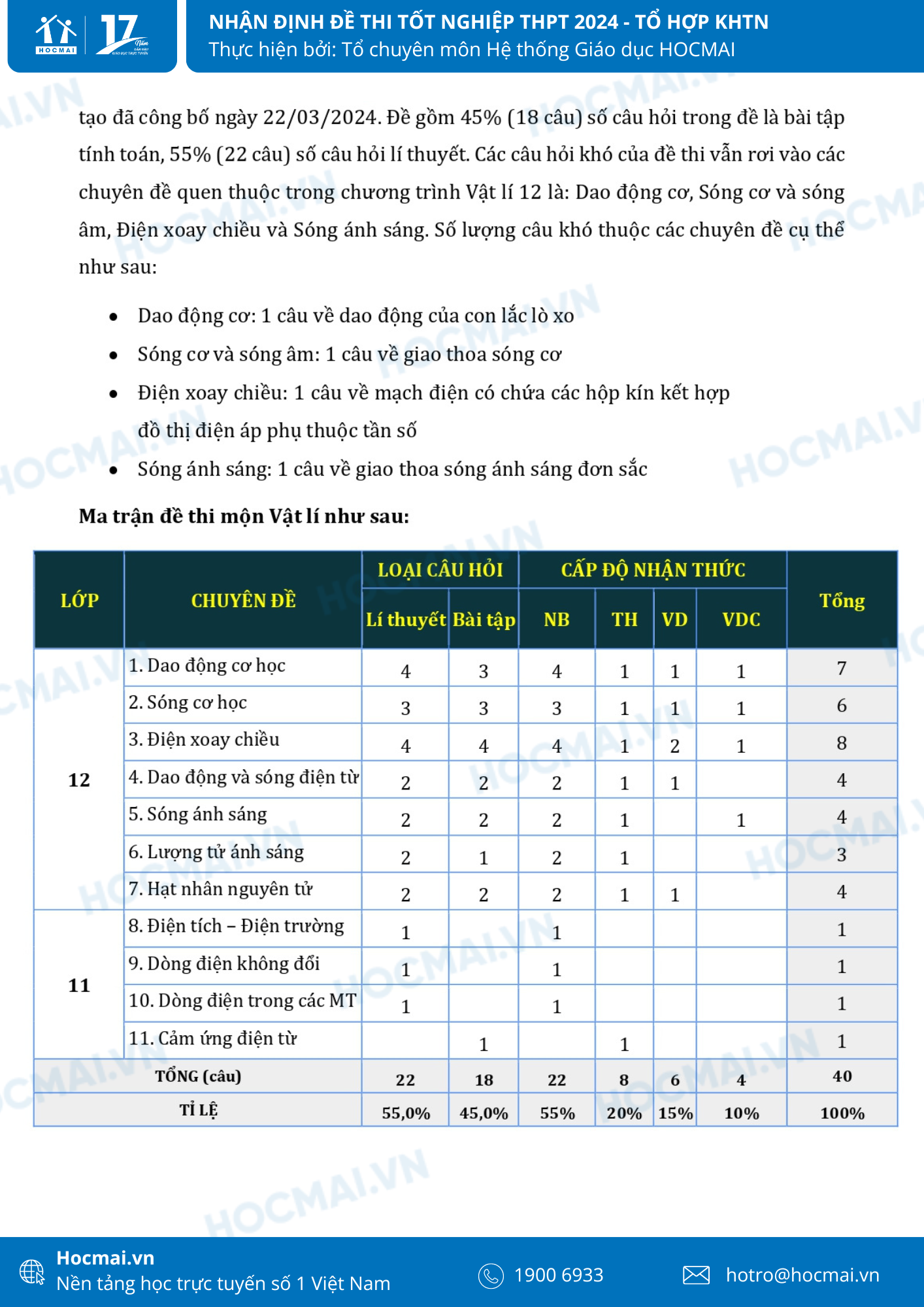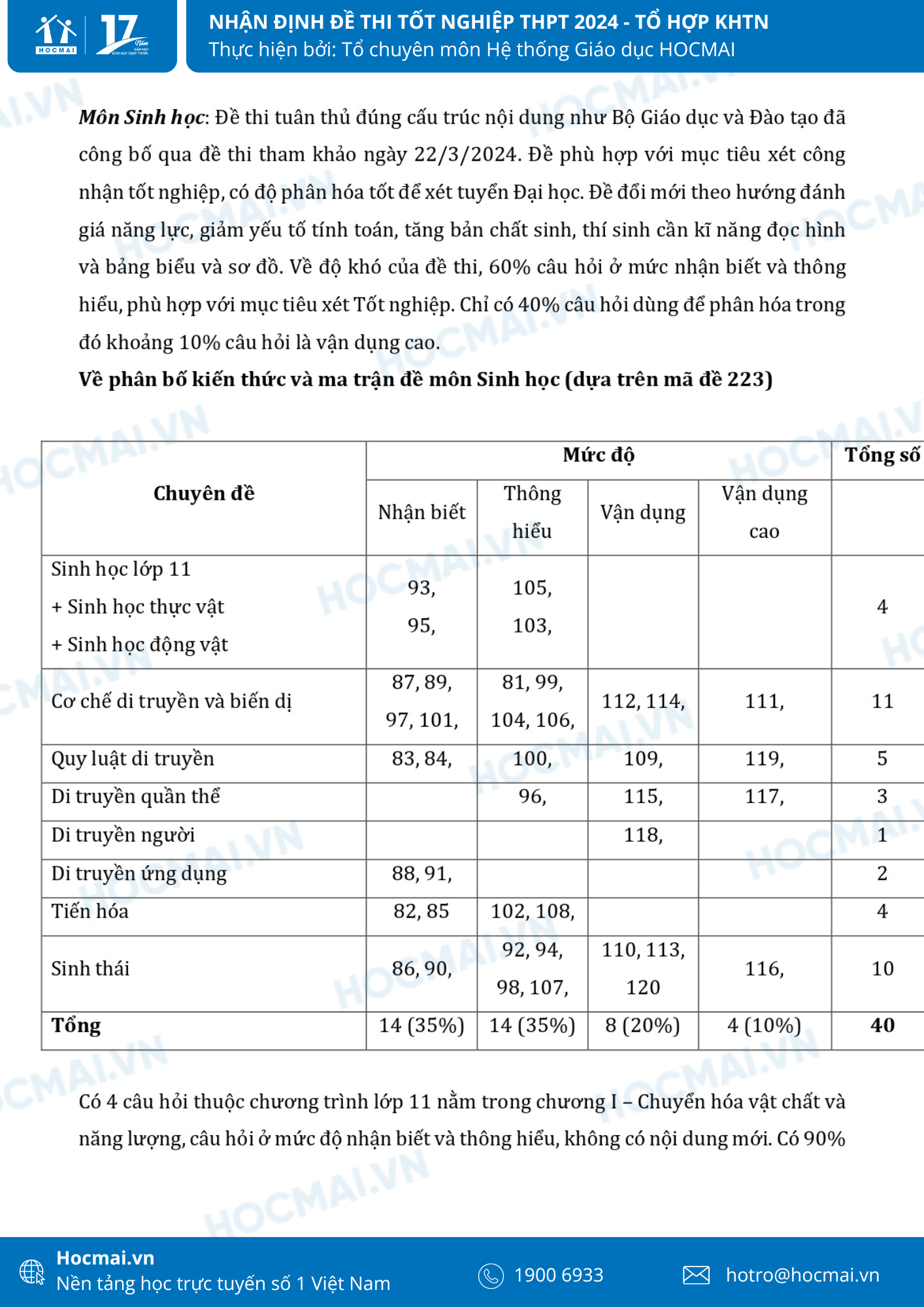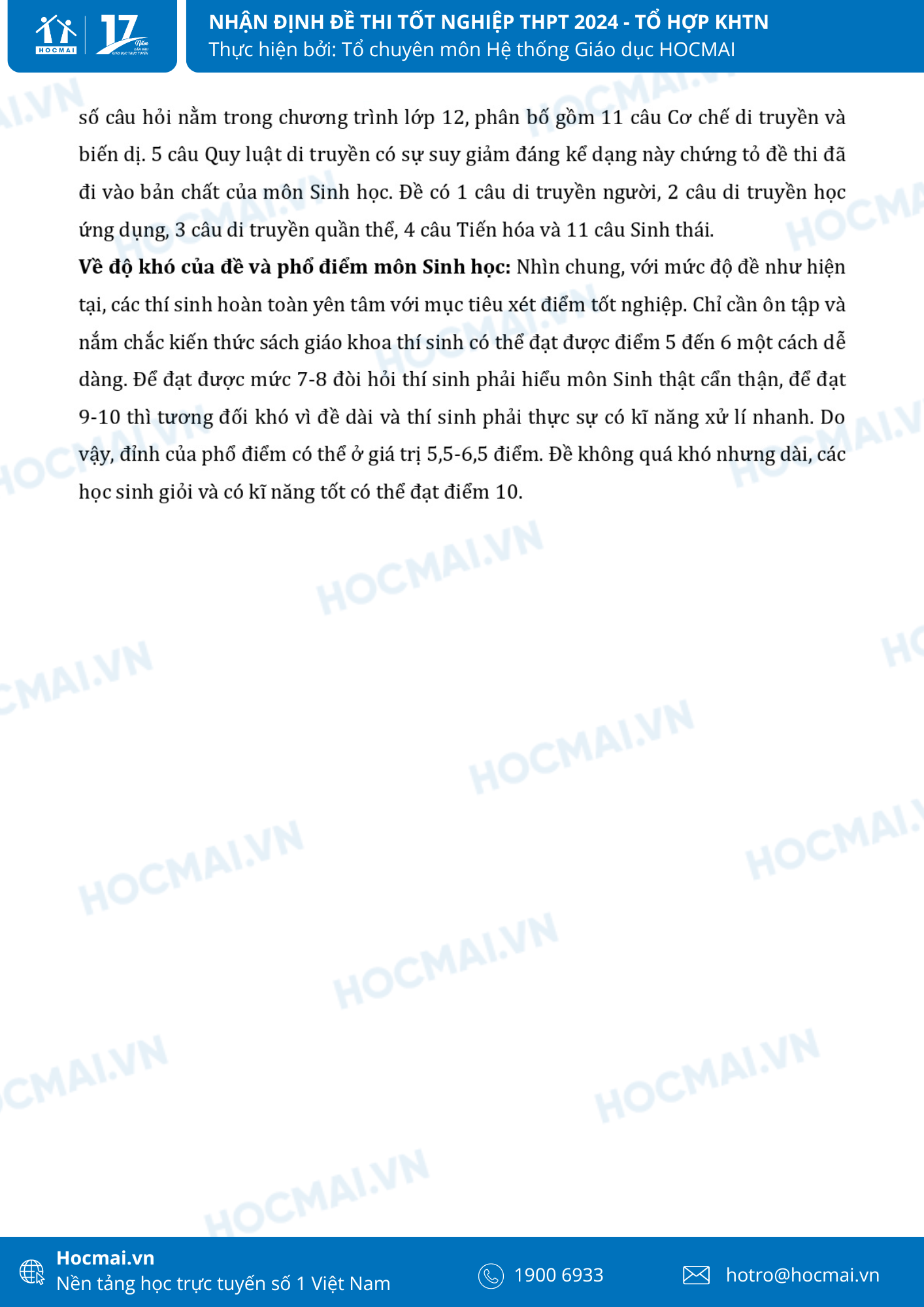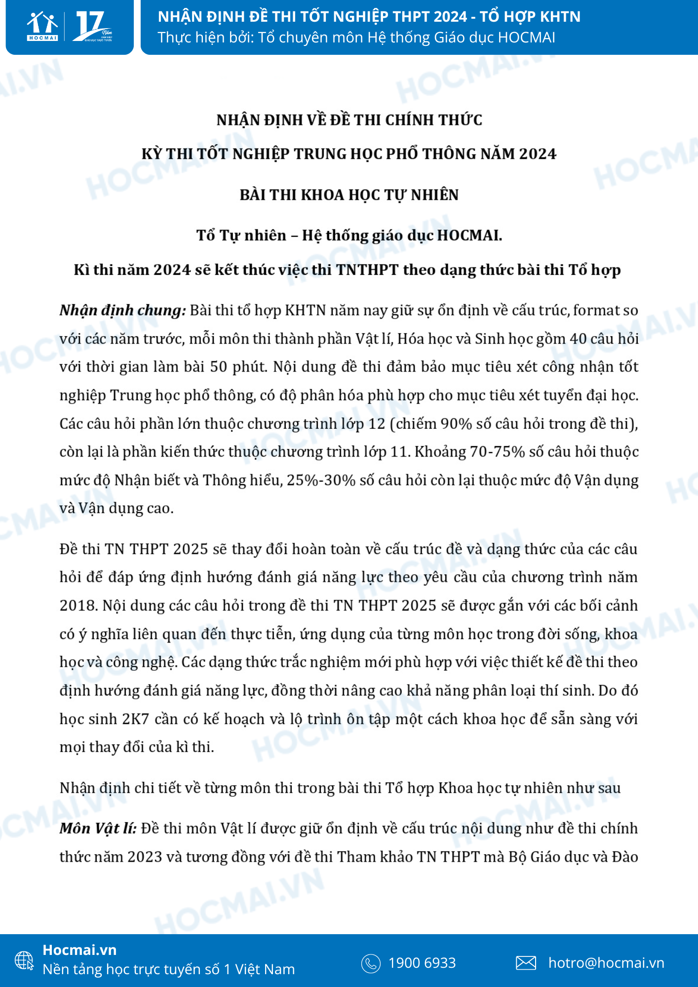 Cùng với những thí sinh còn lại thi tổ hợp môn Khoa học xã hội(KHXH), các thí sinh thi tổ hợp Khoa học tự nhiên (KHTN) đã thi xong trong sáng ngày 28/6 với 3 môn Hóa học, Sinh học và Vật lí. Dưới đây là nhận định của thầy cô từ Hệ thống giáo dục HOCMAI về đề thi năm nay của tổ hợp môn KHTN. Mời quý phụ huynh và học sinh cùng theo dõi dưới đây!