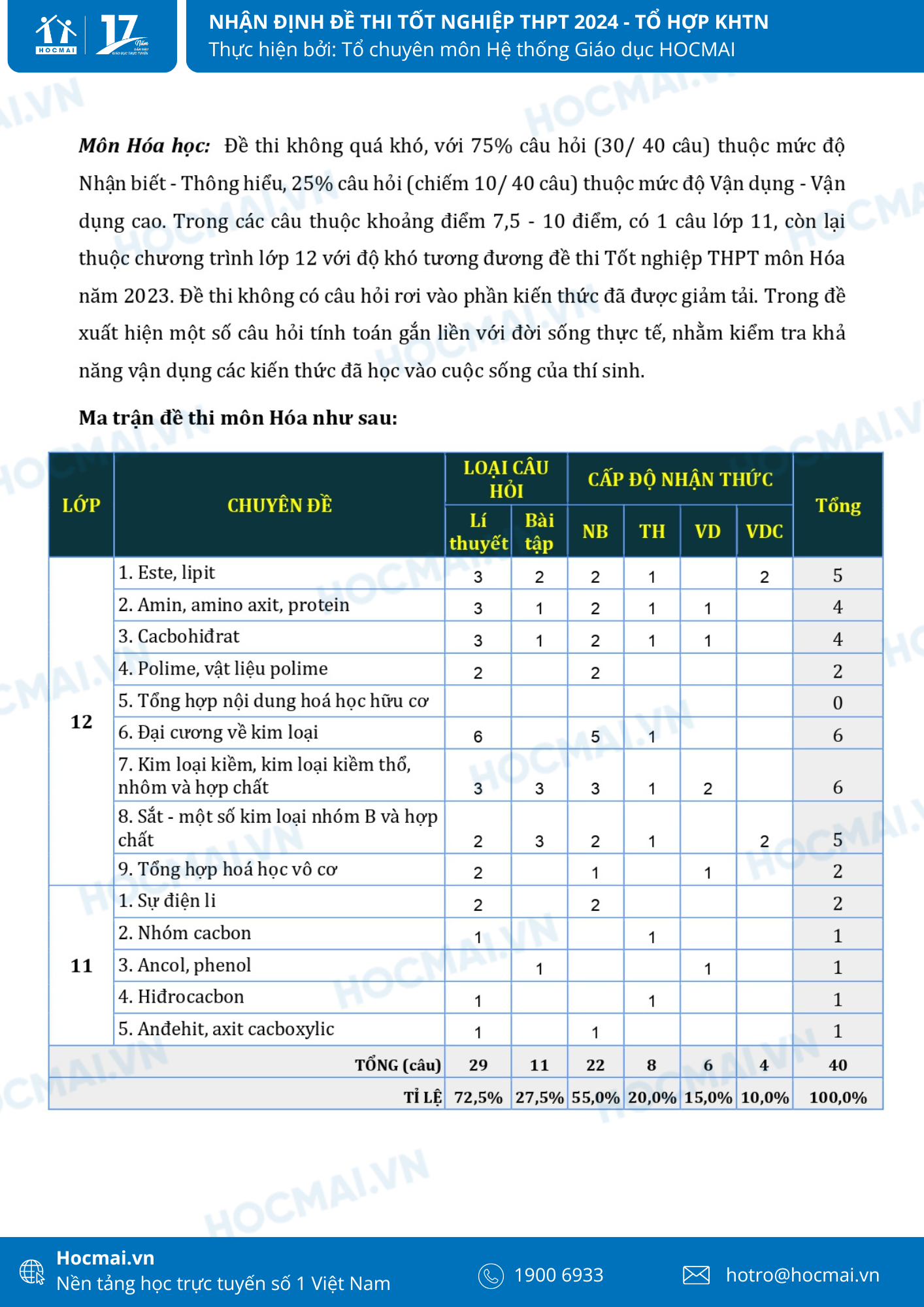 Nhận định đề thi Hóa học tốt nghiệp THPT 2024: