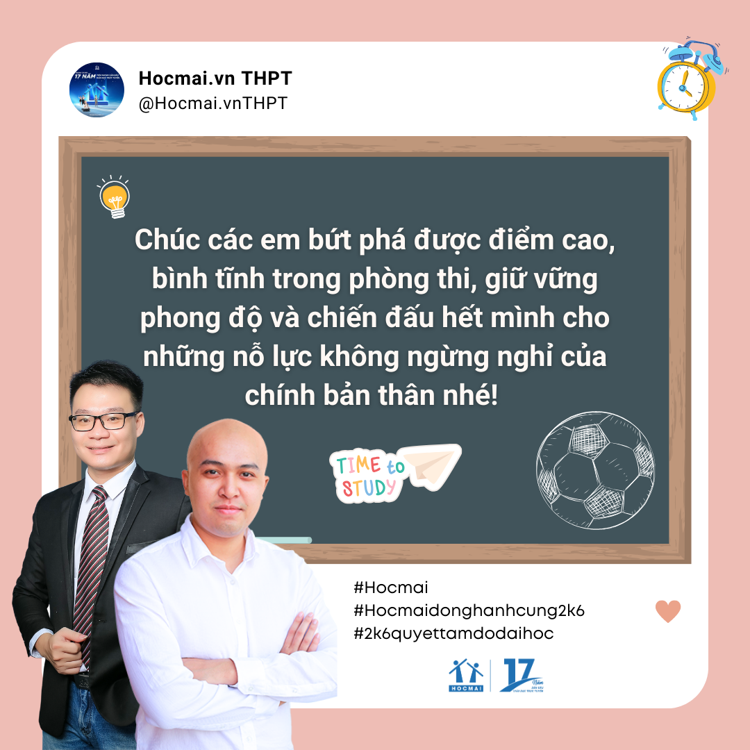 Những kiến thức các bạn đã tích lũy suốt 3 năm học THPT sẽ là hành trang vững vàng để các bạn tự tin giải quyết đề thi. Đừng lo lắng, hãy giữ bình tĩnh, tập trung và phát huy hết khả năng của bản thân.