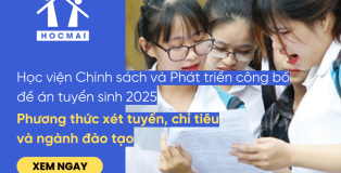 Tuyển sinh 2025: Học viện Chính sách và Phát triển công bố đề án tuyển sinh 2025 – Phương thức xét tuyển, chỉ tiêu và ngành đào tạo