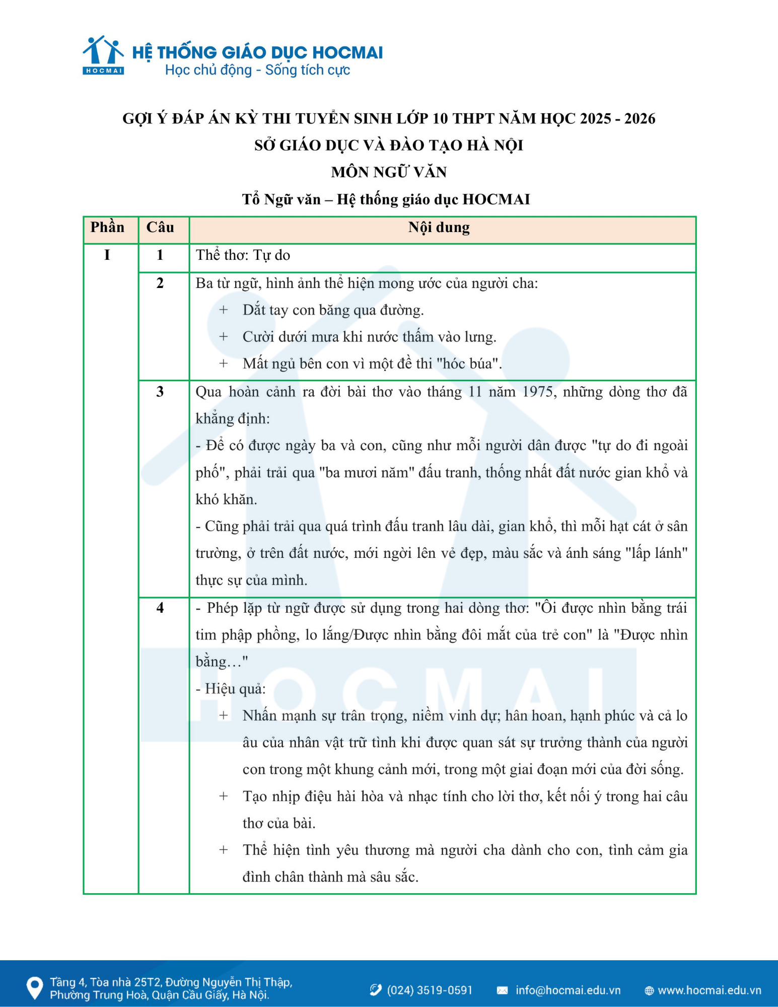 Đề thi và đáp án môn Toán – lớp 10 Hà Nội 2025